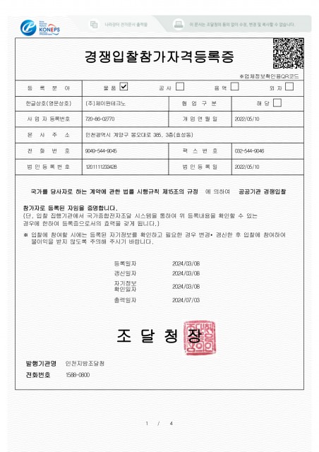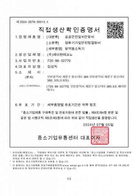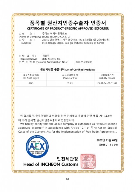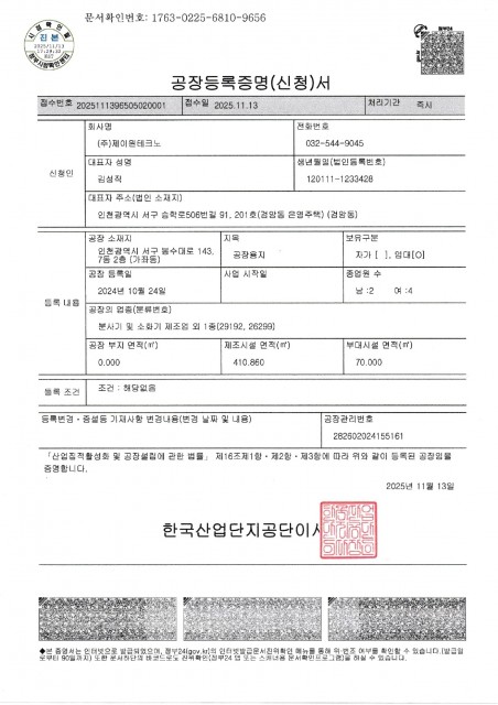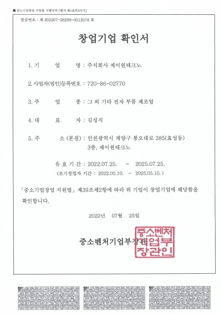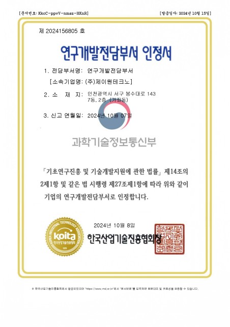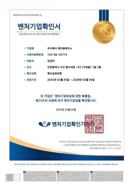 제이원테크노의 인증현황을 확인해보세요.